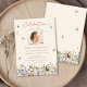 Dies ist eine elegante und skurrile moderne Begräbniskarte, um das Leben Ihres Lieben zu feiern. Das Design besticht durch einen wunderschönen kalligraphischen Schriftart und hübsche Wildblumen in Pastellrosa, lila, blau, gelb, Rost- oder Terrakotta sowie zarte Schmetterlinge. Diese Feier des Lebens Einladung kann leicht mit Ihrem eigenen Foto personalisiert werden, um eine besondere Hommage für die Beerdigung, Gedenkfeier oder Feier des Lebens Ihrer Lieben mit der Vorlage zur Verfügung gestellt. Bitte kontaktieren Sie den Designer, wenn Sie Fragen zu diesem Design oder zu passenden Produkten haben.