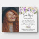Hübsche Gedenktafel mit einem einfachen weißen Hintergrund, ein wertvolles Foto, das Sprichwort "Goodbys sind noch immer, noch sind sie das Ende. Sie gemein vermissen dich, bis wir uns wieder treffen", ihren Namen und Termine.
