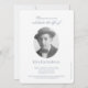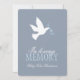 Die friedliche, fliegende weiße Taube auf graue Grafik mit blauen Bändern-Gedenkgottesdienst im Gedächtnis-Foto-Einladungsankündigung verkünden das Bestehen Ihres Liebsten und die Einzelheiten der Feier ihres Lebensdenkmals. Personalisieren Sie mit Ihrem Veranstaltungsort, Foto und Namen Ihrer Lieben und uAwg Details. Originale Kunst und Design von Sarah Trett für www.mylittleeden.com