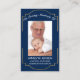 Verabschieden Sie sich mit liebevollen Erinnerungen auf der Beerdigung Ihrer Lieben. Teilen Sie mit dieser eleganten und respektvollen Foto-Gedenkkarte eine Gebetskarte mit Freunden und Familie. Diese Beerdigungskarte weist einen reichen marineblauen Hintergrund mit einem goldenen Rahmen und einem schönen goldenen Kreuz auf. Beten Sie ein Gebet auf der Rückseite oder behielt Sie dieses ergreifende Gedicht. Fügen Sie ein Foto Ihres Liebsten an der Vorderseite mit Platz ein, um einen Namen, Daten und eine Beziehung hinzuzufügen.