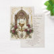 Eleganter religiöser Sake mit einem goldenen Kalice mit dem IHS Christogramm zentriert vor einem gotischen Kathedrale-Bogengang. Zu den interessanten Details zählen: Schöne Blumenarrangements mit bordeauxroten und weißen Rosen Gestaltete Fenstereffekte mit sanften Pastellfarben Vintag inspirierte Aquarellbilder im Communion-Stil für Jungen und Mädchen Perfect als Erinnerungsgeschenk oder Einladung