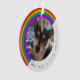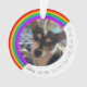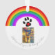 Ein zweiseitiges Ornament mit einem Regenbogenbild auf beiden Seiten. Viel Platz für zwei Fotos und ein kurzes, persönliches Gefühl zu Ehren Ihres Haustieres, das weitergegeben wurde. Originelles Design von Night Owl's Menagerie, 2023.