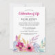 Eine eindrucksvolle Feier der Beerdigungseinladung, mit lebendigen Aquarellfarben-Blume auf klassisch weißem Hintergrund und einer eleganten Gedenktafel, die leicht personalisiert werden kann.