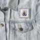 Elegantes Button mit Skripttypografie, einem benutzerdefinierten Foto und einer personalisierten Nachricht.