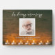 Moderne Gedenkstätte, um einem geliebten (Mann oder Frau), der verstorben ist, Tribut zu zollen, mit einem Foto von Teelicht-Kerzen vor einem rustikalen Holzhintergrund mit den Worten: "In liebevoller Erinnerung", ein Foto Ihrer Lieben, ihren Namen und ihre Jahre der Geburt und des Todes (oder jeden Text, den Sie gewollt haben). Wenn Sie Hilfe bei der Anpassung benötigen, schreiben Sie mir bitte den unten stehenden Button und ich werde Ihnen gerne helfen.