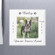 Ehre deinen geliebten Begleiter mit diesem personalisierten Gedenkmagneten für Haustiere. Dieses Design ist komplett mit dem Namen Ihres Haustieres mit zwei Pfotendrucken, den Daten, die sie lebten, und den Worten "Sie sind für immer geliebt". Wenn Sie ein anderes Sprichwort wünschen, können Sie es durch Ihren eigenen Text ersetzen. Dieses Design kommt auch mit einem Platz, um ein Foto Ihres Hundes hinzuzufügen.