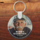 Ein Schlüsselanhänger für Freunde und Verwandte, der als Geschenk auf einer Beerdigung mit einem Foto Ihres Liebsten und den Worten "FOREVER IN UNSEREN HERZEN", ihrem Namen und ihrem Datum der Beerdigung/des Todes gegeben wird.