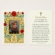 Diese traditionelle katholische Gedenkkarte bietet einen reich detaillierten Blumenrahmen aus goldenen Weinbergen, blauen Marian-Blüten und roten Mohnblüten, die das Bild Ihres Lieben umkreisen. Ein goldenes Marian-Monogramm unter dem Porträt ehrt die gesegnete Jungfrau Mary, während im hinteren Teil ein herzliches Gebet enthalten ist, das das Soul des Verstorbenen durch Unsere Lady und die Gemeinschaft der Heiligen der Barmherzigkeit Gottes anvertraut. Personalisiert mit dem Namen und den Daten der Verstorbenen, bietet dieses heilige Design einen ehrwürdigen Sake für die Bestattungsmasses, den Alltag der Soule oder Erinnerungen.