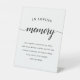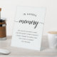 Das einfache und schicke Schild eignet sich hervorragend, um an Ihrem Gedenktisch für Hochzeiten Platz zu nehmen oder um Liebende zu ehren, die verstorben sind. Personalisieren Sie den Kopf- und Texttext (mit "In Loving Memory" und einem kurzen Gedicht) in knackiger schwarzer Kalligrafie-Schrift und klassischer Blockschrift.