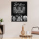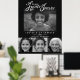 Begräbnisplakat in Schwarz-Weiß mit einem Foto oben und drei Fotos darunter, mit denen Sie Ihre sehr weit verstorbenen Personen bei ihrer Zeremonie anzeigen können. Personalisieren Sie mit dem Namen und den Geburtsdaten Ihres Liebsten. Diese Beerdigungszeremonie in unseren Herzen für immer Banner ist ideal für jeden, der sehr geliebt ist und für immer in ihren Herzen bleiben wird. Originelle Typografie und Herzgrafik-Design von Sarah Trett für www.mylittleeden.com (Foto Credit von Guilherme Stecanella on Unsplash Model Foto, das nur ein Platzhalter für Sie zu ersetzen ist).