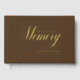Kundenspezifischer, denkmalgeschützter, eleganter, einfacher "In Loving Memory" vergoldeter handschriftlicher Schriftart, braune Begräbnisgastronomie. Erhältlich in Gold, Kupfer und Silberfolie.