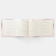 Elegantes Wasserfarbenrotes und rosafarbenes Blumengedenkmal/Begräbnisgastronomie-Gästebuch mit Silberkreuz, Aquarellrosen und Rosenrosen sowie Blume des Babyatmens auf einem üppigen Hintergrund.