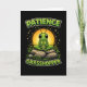 Eine ruhige Cartoon-Grashüpfer meditiert auf einem Felsen unter einem strahlenden Sonnenuntergang und symbolisiert Achtsamkeit, Geduld und inneren Frieden.