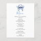 Diese individuell gestalteten Hochzeitsmenüs bieten eine wunderschöne Aquarellkrabbe in Blautönen. Ideal für ein Hochzeitstil im Wassersport, mit dem Sie Ihre personalisierten Daten ganz einfach mit den Vorlagenfeldern hinzufügen können. Für erschwinglichere Ideen für Hochzeitsmenüs besuchen Sie www.zazzle.com/dotellabelle. Diese einzigartige Aquarellkunst wurde von Victoria Grigaliunas of Do Tell A Belle entworfen.