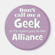 Nenn mich nicht einen Geek, oder ich melde dich bei der Allianz. Lass den Leuten um dich herum, was du willst und dass du bereit bist, es zu verteidigen.
