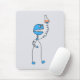 Geek Mousepad mit einem lustigen Cartoon Roboter-Chemiker, der eine Blubbling-Flasche hält. Der lustige Roboter ist aufgeregt, als ob er lächelt und "Eureka!" Sprichwort. Dieses Roboter-Mousepad wird an Wissenschaftsfreaks und jemanden appellieren, der Chemie, Roboter und Cartoon-Illustrationen Liebe.