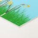 Ein ursprünglicher digitaler Kunstentwurf, der wie man darstellt, erdete mit Muttererde bleibe; einen Baum mit Grün-Blätter mit blauen Vögeln zeigend, kleidete grünes Gras, Iris-Blumen mit 3 blauen Schmetterlingen oben, ein Mädchen in Lila, in einem tan Hund, in einer tan Katze, die um den Baum spähen und in einer Gitarre, die am Baum mit einem blauen Himmel und einem gelben Hintergrund sich lehnt an. Die Wörter geerdet gegen die gelbe Sonnefarbe.