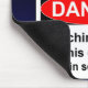 GEFAHR! Rührende Sachen auf diesem Schreibtisch können ernste Verletzung ergeben. Lustiges mousepad für jedermann, das in einem Büro arbeitet. Die Ausrüstungsbeschreibungen ein Warnzeichen und der Hintergrund hat die Kontur eines Körpers in der Kreide, die einen roten Hefter mit "Verbrechenszene" Band über der Ecke des Bildes berührt. Hintergrundsteigungen von dunkelblauem zum Bürgersteigsschwarzen.