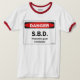 Gefahrn-SBD-T - Shirt, mit einem lustigen Zeichen, zu warnen, dass schützender Gang notwendig ist. Lustiger T - Shirt mit Furz-Spaß.