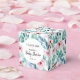 Gefallen wird die Box für Babydusche, die mit bezaubernden Aquarellbildern mit sanften pastellfarbenen smaragdgrünen und blauen Blätter, Zweigen und sanften rosa Rosen dekoriert ist.