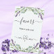 Weiß und elegant, mit Lavendelblumen, Blume und Eukalyptusgrün dekoriert. Text: Favoriten, bitte nehmen Sie einen. Herr und Frau.