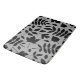 Autumnal gefallene Blätter in einem Oberflächenmuster-Design in schwarzem Detail ein grauer Hintergrund.