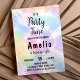 Unsere gefärbte Krawatte zum Geburtstag lädt Sie ein, Freunde und Familie zu Ihrem Party einzuladen. Das Design bietet ein gefärbte Krawatte-Thema mit viel Platz für alle wichtigen Details wie Datum, Uhrzeit und Position des Party. Ideal für jedes Alter, Geschlecht und Thema des Party, es wird sicher sein, Ihre Gäste zu beeindrucken und sie zu begeistern für die Feier.