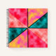 Notebook mit rosa mehrfarbigem Cover und rosa Rückseite.