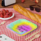 Diese elegante Geburtstagskopfserviette verfügt über eine Krawatte, die Regenbogen in Pastellfarben die.