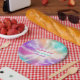 Gefärbte Krawatte Pastell Rosa Orange Aquamarin Li Pappteller
