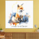 Bringen Sie die Schönheit der Wildnis in Ihre Zuhause mit diesem atemberaubenden Leinenprint. Das "Whispers of the Wild Fox in Watercolor design" mit seiner eleganten Kombination aus ruhiger Blau und lebhafter Orange wird auf einer hochwertigen Leinwand gedruckt, um ein Kunstwerk zu schaffen. Dieses Stück verleiht jeder Wand eine Touch von Natur und einen Pop von Farbe, was es zu einer perfekten Ergänzung zu einem Wohnzimmer, Schlafzimmer oder Büro macht. Passen Sie es an mit einem Satz wie Willkommen in den Den, Bleibe Wild, oder Wild & Free.