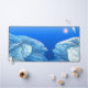 Ein 3D-Fraktal in blauen Tönen, das Wellen oder Flügeln aus Schnee ähnelt. In der Ferne ist eine blasse Sonne sichtbar. Passen Sie Ihren eigenen Text an.