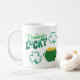 Gefühl Lucky mit einem Topf Gold auf einer Kaffee-Tasse.