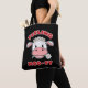Gefühl morgens. Eine lustige Tasche mit einer super niedlichen Kuh Gesicht mit ertränkenden Ohren, buckigen Zähnen und einer Blume im Mund. Ein perfektes Geschenk für Tierfreunde oder für alle, die ein Fan von kawaii Tieren sind.