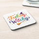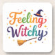 Ein niedliches farbiges Zitat Feelin Witchy mit Hut und Besen. Ideal zu Halloween.