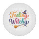 Ein niedliches farbiges Zitat Feelin Witchy mit Hut und Besen. Ideal zu Halloween.