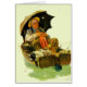 Künstler: Schlafender alter Mann u. Hund Norman Rockwells | in den Angelschnüren des Rowboat w/multiple