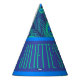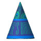 Ausgeklügelt und farbenfroh präsentiert sich dieses wunderschöne Luxus-Party - das Pfauenfederdesign zeigt das pulsierende Pfauenauge in der Feder und die wunderschönen, leuchtend blauen aquamarinen Aqua-Grüntöne in den Pfauenfedern. Am Hutgrund befindet sich ein dunkelblauer Bereich, wo Text in einer lebhaften aquamarinen Farbe ist. Dieser Text ist anpassbar, sodass Sie ihn ändern und zu Ihrem eigenen machen können. Derzeit ist es ein Geburtstag Gruß, nämlich "Glücklich Geburtstag", an eine benannte Person.