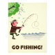 Gehen Sie angeln , niedlicher Cartoon Vintag oder Retro Fischer Reiseplakat.