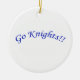 Geh Ritter! In blau gekrümmtem Text. Zusätzliche Hintergrundfarben und -stile sind verfügbar (mit weißem Hintergrund, runder Stil). Personalisierbar.