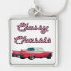 Grosser quadratischer Premium-Metal-Schlüsselanhänger mit einem klassischen rosa Cadillac-Bild und den Worten "Klassisches Gehäuse" (50er slang) in 50er-Stilschrift in Rosa und Schwarz-Polka Dot Buchstaben. Siehe dazu passende quadratische Taste und quadratische Halskette. Sehen Sie sich die gesamte Sammlung von Nifty 50er Schlüsselanhänger in den SPEZIELLEN TOUCHS an. | Abschnitt Gastgeschenke.