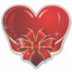 Maßgeschneiderter Vinyl-Aufkleber mit einem Bild eines glänzenden roten Herzens, verpackt in einem roten und goldenen Band in einem Bogen. Siehe passende Geschenkmarke. Die gesamte Valentinstag-Aufkleberkollektion finden Sie im INVITES | Aufkleber und Etiketten.