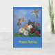 Frühlingsszene mit Blumen und Vögel und eine neugierige Tuxedokatze