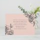 Elegante blumengeschmückte Hochzeitseinladung in Rosa und Schwarz in Schwarz, ergänzt Ihre Hochzeitsdetails in dunkler Schrift, flankiert von zarten Vintagen Konturen im Blumenstil. Hochzeitseinladungen kehren zu einem passenden Blumenmuster in Weiß auf Schwarzschwarz um. Die Kollektion Secret Garden ist eine schicke Mischung aus klassischen Farben und Blumen mit moderner Empfindlichkeit. Sie ist schlicht und zart. Ideal für Frühjahr- und Sommerhochzeiten, sowohl formell als auch lässig.