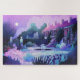 Digitale Abbildung zeigt einen Geheimgarten im Sommer, der von einem großen grünen Zaun mit einem geschnitzten Tor umgeben ist. In der Nähe befindet sich ein großes englisches Landhaus inmitten des Nachttraumes und im Fenster kann man das verblassende geheimnisvolle Licht sehen. In der Mitte des blühenden Gartens befindet sich ein zauberhafter, weißer Brunnen mit fließendem Wasser