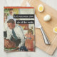 Mein Geheimnis für das perfekte Erntedank. Lass jemand anderen die ganze Arbeit. Vintage Grafik einer Familie in der Küche, die einen Erntedank Truthahn zubereitet, den Kürbiskuchen in den Ofen steckt und wer weiß, was das kleine Mädchen aufwühlt, könnte Kartoffeln zubereitet werden, aber höchstwahrscheinlich ist es schwierig. Erntedank Küchenhandtuch mit hübschen, rustikalen, braunen, orangefarbenen, goldenen und grauen kariert.
