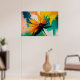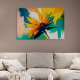 Dieses kühne abstrakte Kunstwerk fängt einen Moment explosiver Bewegung und Licht ein, in dem eine blumenähnliche Form in einer dramatischen Farbbewegung nach außen zu platzen scheint. Goldgelbe und warme orangefarbene Blütenblätter strahlen von einem tiefroten Kern aus und schneiden dynamisch durch einen Hintergrund aus Türkis, Smaragdgrün, sanftem Rosa und texturierten Neutraltönen. Die Komposition wirkt instinktiv und kraftvoll, als ob die Natur selbst mitten in der Bewegung erfasst worden wäre.
