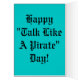 Sprechen Sie wie eine Piratengrußkarte, welche die public domainkunst des bekannten Pirat-themenorientierten Illustrators und des Verfassers, Howard Pyle kennzeichnet. Karte liest mit dem Kapitän-Sprichwort, "Avast! Wenn YE ablehnen, wie ein Pirat zu sprechen, dann geht YE wie ein Pirat, YE scallywag," und das Crewmitglied reagiert, "schieben sie herauf Ihren Hintern, Captain Ein-Krabbe. Wie ist das erst einmal?"