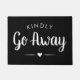 Lustige nicht-bestimmt-freundliche Fußmatte im Schwarzen mit nett gehen weg geschrieben in ein kombiniertes des modernen Schriftartes und der Kalligraphie, mit einem wenig Herzen.
