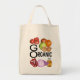 perfekte Tasche für den Bauersmarkt lässt bunte Früchte und Veggies mit dem Sprichwort BIO GEHEN
